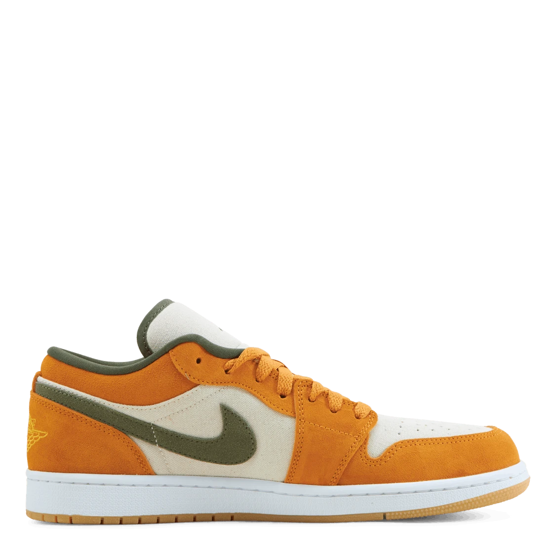 Inspirerad av säsongen 1985-1986 firar Air Jordan 1 Low SE återkomsten av Tinker Hatfields mest ikoniska design. Den har en överdel i premiumläder, som är inlindad i en gradient som bleknar från mörkorange till ljusorange. Och så är det yttersulan, som är klädd i en svart och grå färg, med vit Jumpman-märke från häl till tå.