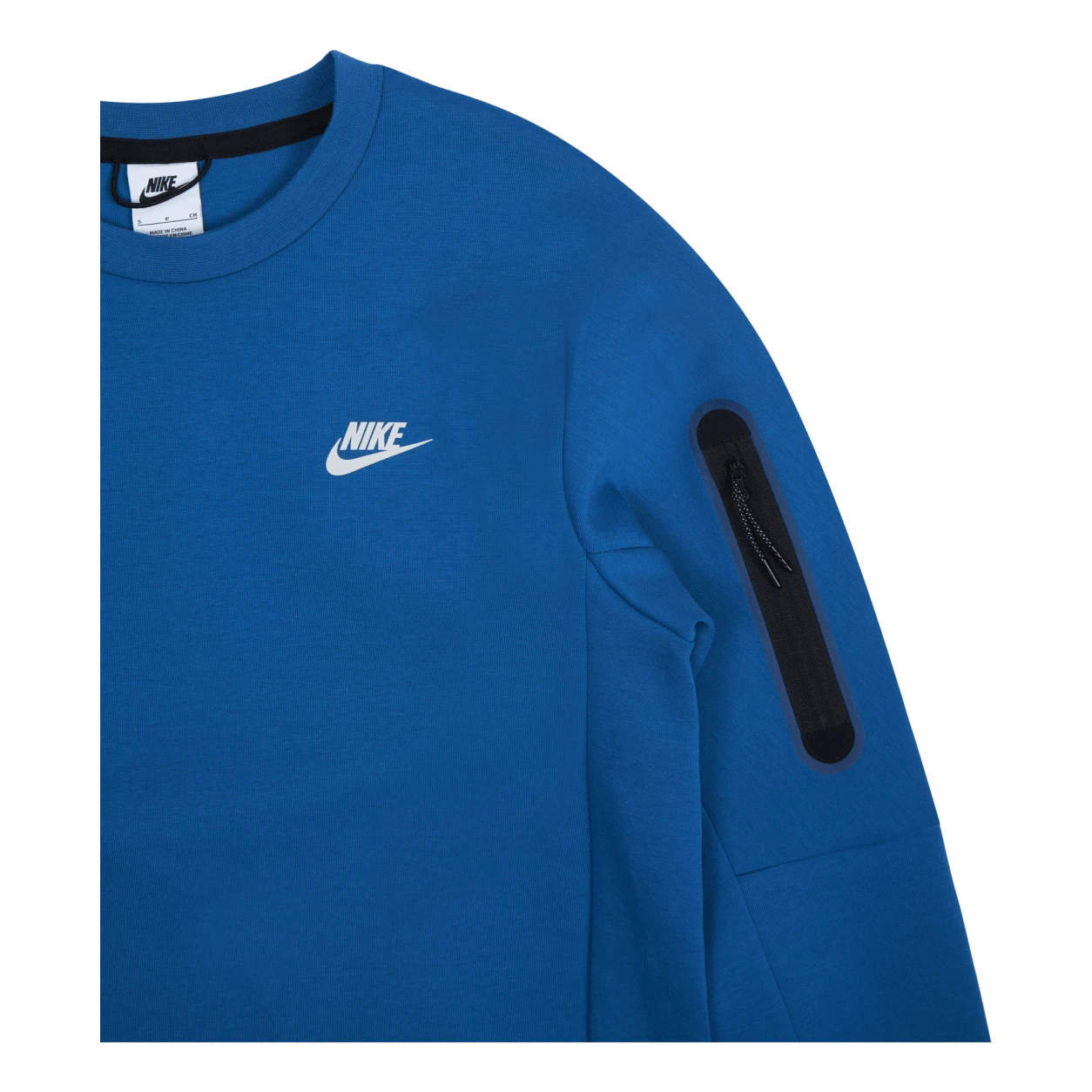 The Nike Sportswear Tech Fleece Crew updates a classic silhouette with lightweight double-sided spacer fabric for added warmth without extra weight. Surrounding transparent tape highlights the signature Tech Fleece pocket detail on the sleeve.